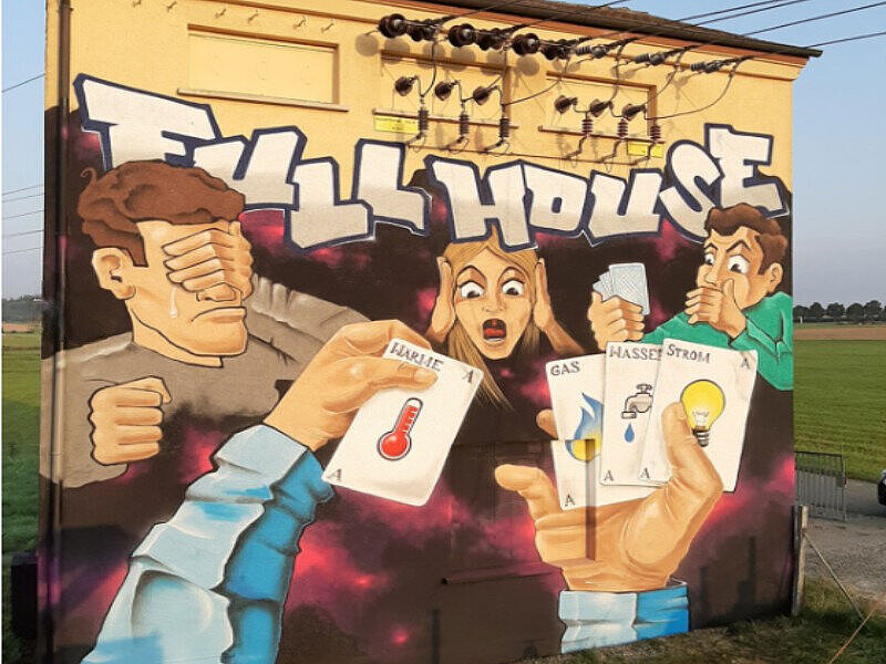Besonders markant ist unser Graffiti an der Kreisstraße zwischen Ehningen und Darmsheim. Es soll verdeutlichen, dass die Stadtwerke nicht nur ein reiner Strom- oder Gasanbieter sind, sondern zusätzlich auch alle Netze betreiben. Somit bekommen unsere Kunden bei uns alle Trümpfe aus einer Hand und profitieren dadurch mit nur einem Ansprechpartner.